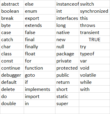 A list of all the reserved words in javascript are given below following the table they cannot be used for variables declared in JavaScript, and cannot use also functions, methods, loops, or labels or object names.